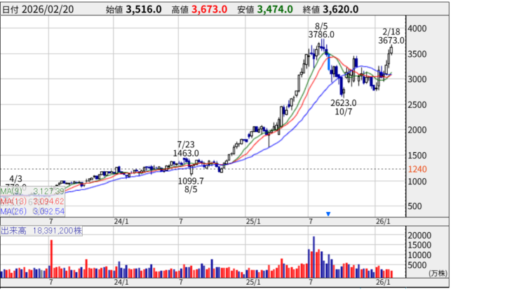 1月入って、急に出来高ぴこっと現れて、また上昇。