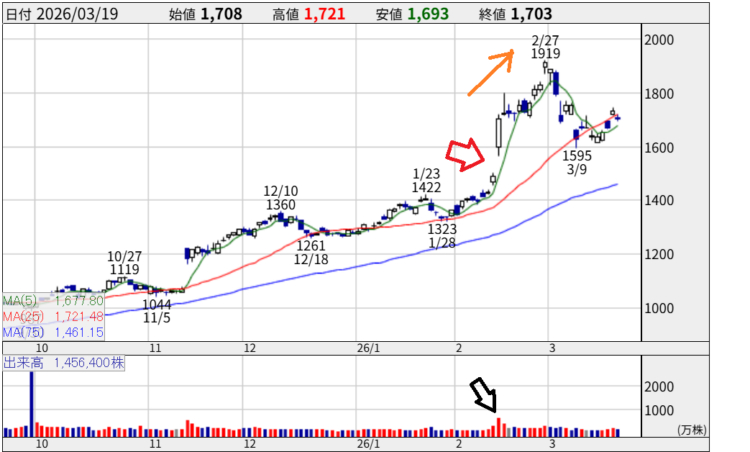 そして、3月9日の1595円から回復の兆しを見せているのは、ファンの支えもあったりして、決算の強さから、「下がった今が買い!」個人投資家が購入したかもしれないですね。