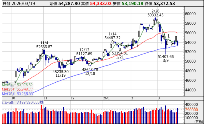 2月27日の最高値から、一旦下がっているのは、不安定な世界情勢が原因っぽいですね。