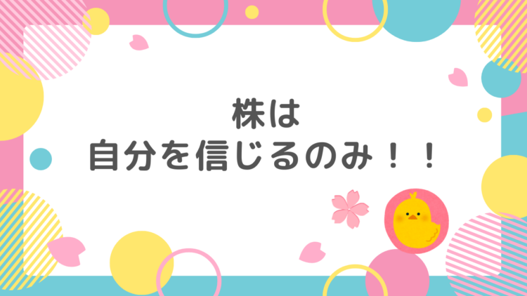次回は、友達の息子さんの「株は自分を信じるのみ!」からの、私の迷走をお届けします。